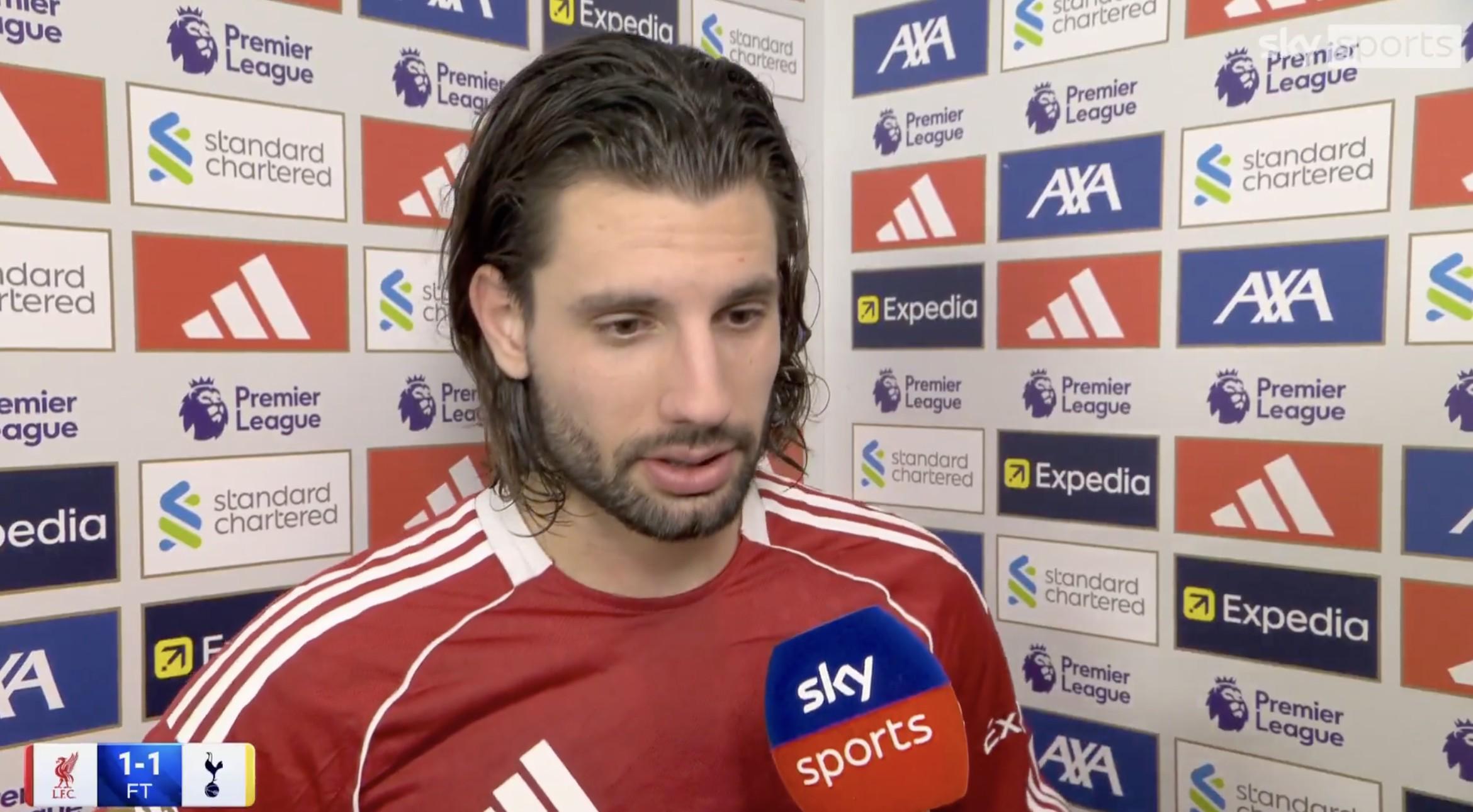 英超第30轮,利物浦主场1-1战平热刺,此役打入一粒任意球的利物浦中场索博斯洛伊赛后接受了天空体育的采访。